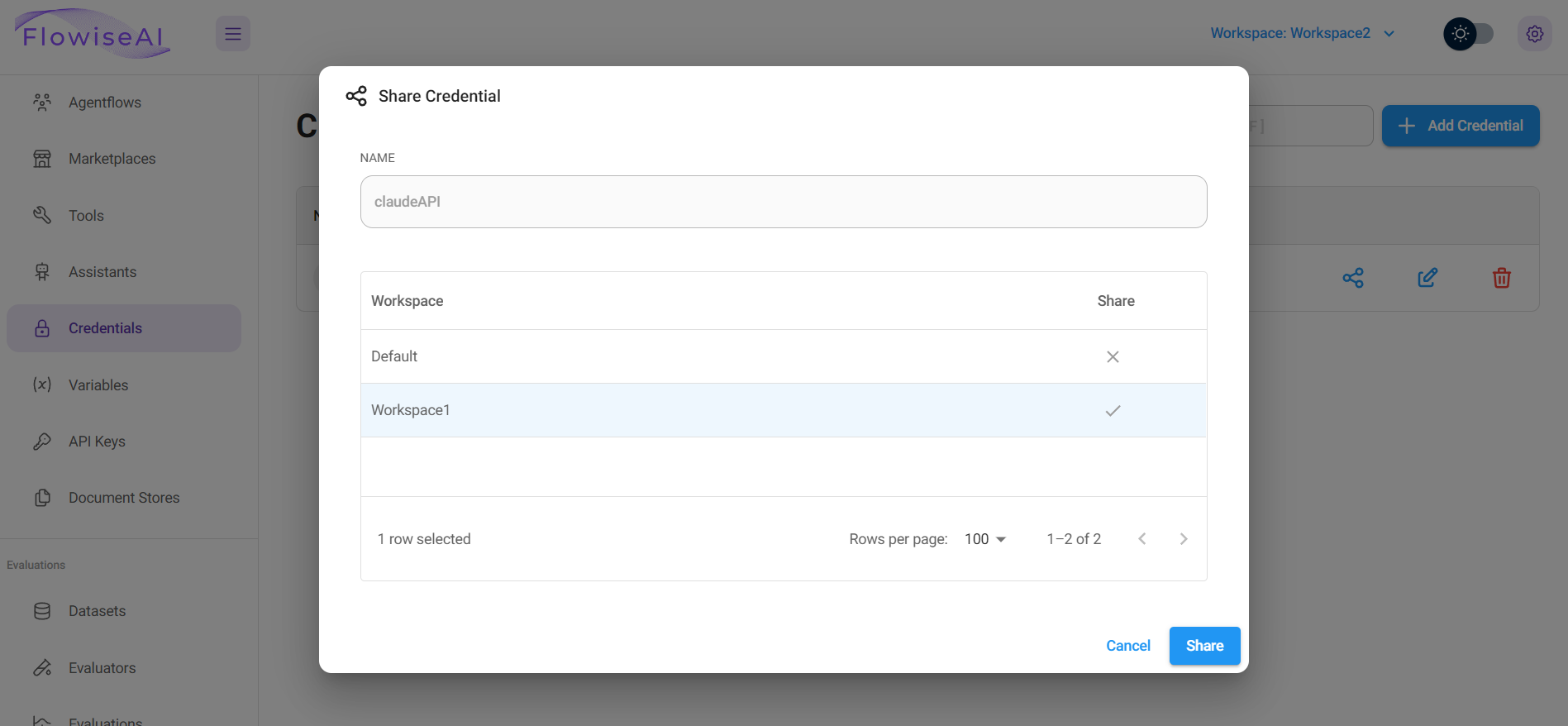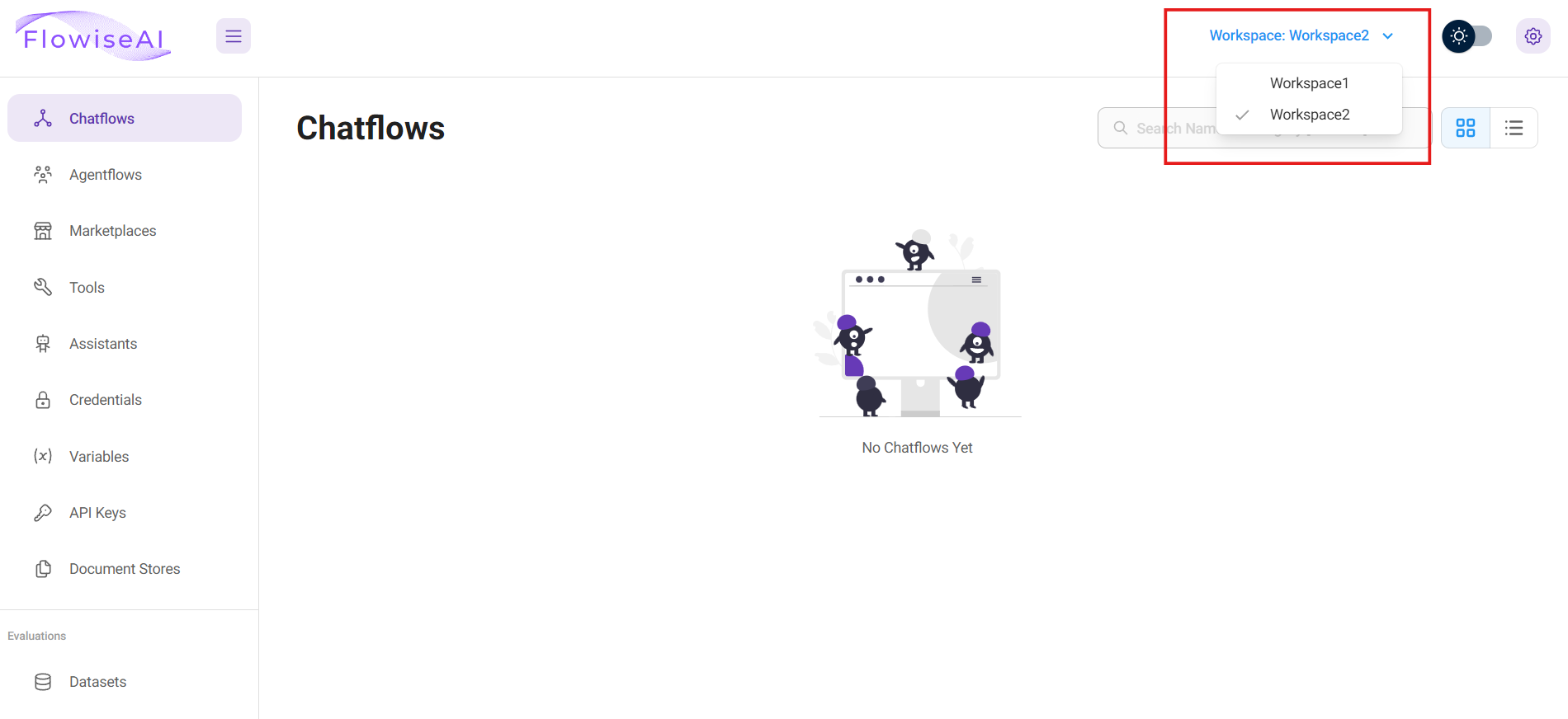 When we switch to Workspace2, Chatflow1 will not be visible. This applies to every resources such as Agentflows, Tools, Assistants, etc.